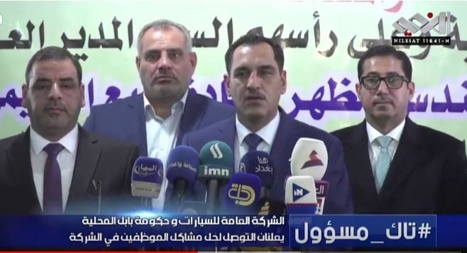 أعلنت الشركة العامة للسيارات وحكومة بابل المحلية،التوصل لحل مشاكل الموظفين في الشركة خلال برنامج تاك مسؤول الذي يعرض على قناة النعيم الفضائية.