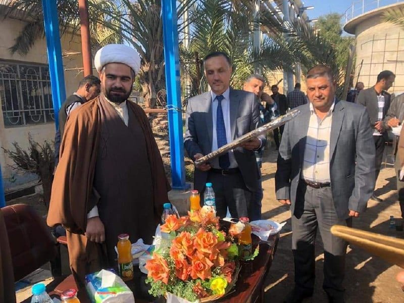 افتتح مدير مكتب المرجع الديني الشيخ محمد اليعقوبي دام ظله في البصرة فضيلة الشيخ عمار الربيعي برفقة مدير معمل ورق البصرة رئيس المهندسين سعد عبد الرحمن المحطة الثانية لتحلية المياه في معمل ورق البصرة الكائن في الهارثة شمال البصرة.