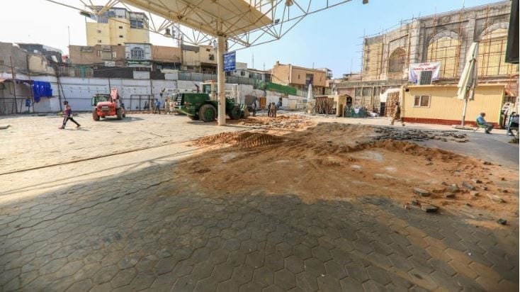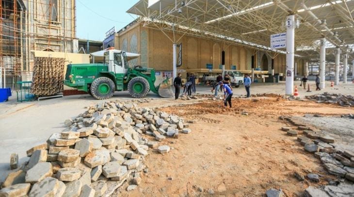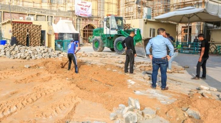 وأضاف، أن” الأعمال تضمنت رفع المقرنص والحفريات بحسب المناسيب المطلوبة ورفع العوائق والعوارض الحديدية، ومن ثم تتم المباشرة بمد أنابيب تصريف مياه الأمطار ونصب فتحات تصريف المياه ومن بعدها سيتم فرش الارضية بطبقة من مادة السبيس وصب طبقة من (البلاندنك) وبعدها التسليح والصب الكونكريتي”.
