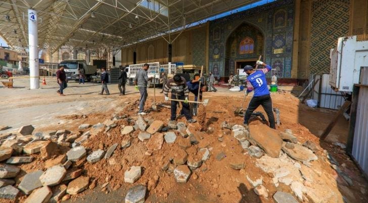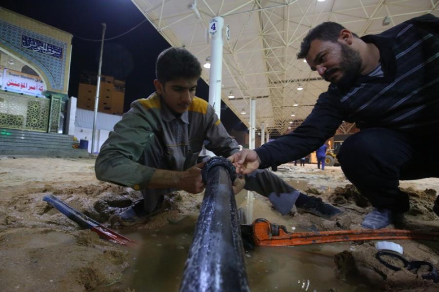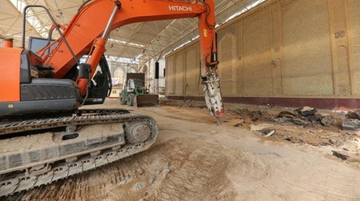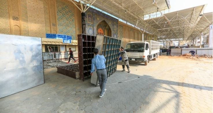 بدأت أعمال المرحلة الأخيرة لمشروع صحن الرسول الأعظم(ص)، بما يتضمن مجاميع صحية وخدمات مختلفة، ولا تزال مستمرة لمدة 24 ساعة متواصلة للانجاز.