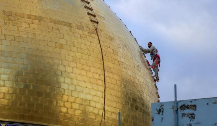 بالصور: بذكرى ولادته.. غسل قبة مرقد أمير المؤمنين (ع) وتزيين ماحولها