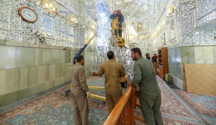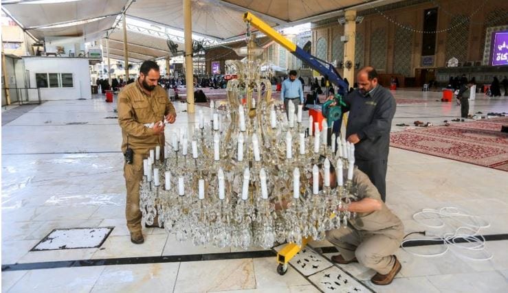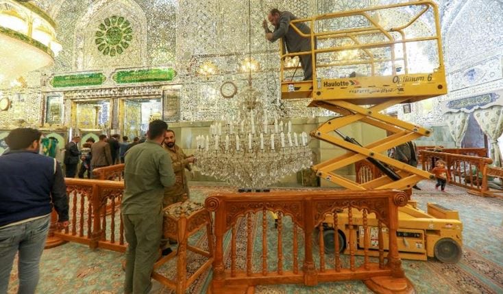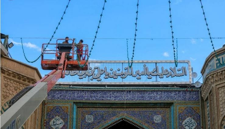 يواصل منتسبو الأقسام الميدانية في العتبة العلوية استعداداتهم الميدانية لتأهيل قبة المرقد العلوي الطاهر والأرجاء المباركة المحيطة بداخل وخارج الصحن الحيدري الشريف وذلك استعدادا للإحتفال بالمولد العطر لسيد الأوصياء ويعسوب الدين وقائد الغر المحجلين أمير المؤمنين وليد الكعبة المشرفة ( صلوات الله وسلامه عليه).