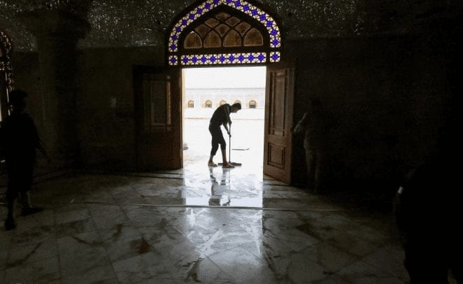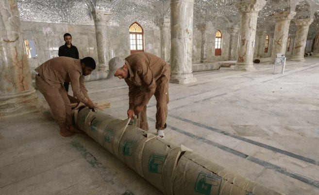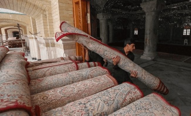 بالصور.. تحضير صحن السيدة الزهراء (ع) لاستقبال زوار الأربعين في النجف الأشرف