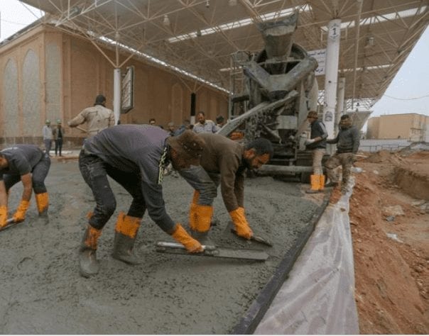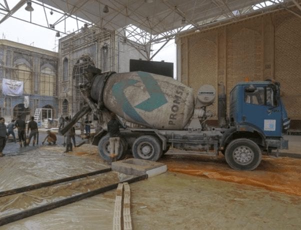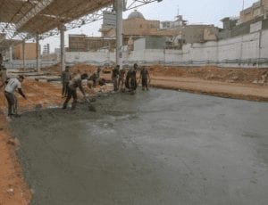 تواصل الكوادر الهندسية والفنية العاملة في قسم الشؤون الهندسية والفنية بالعتبة العلوية المقدسة أعمالها الميدانية المتمثلة بالصب الكونكريتي للمساحات المتبقية من صحن الرسول الأعظم (صلى الله عليه وآله) المقابل للأبواب الرئيسية المؤدية إلى الحرم العلوي الطاهر( باب القبلة وباب الفرج).