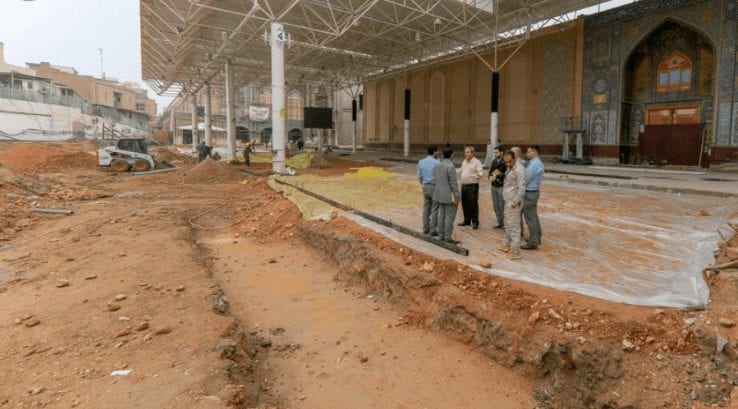 بالصور.. تسارع وتيرة عمل مشروع صحن الرسول الأعظم (ص)