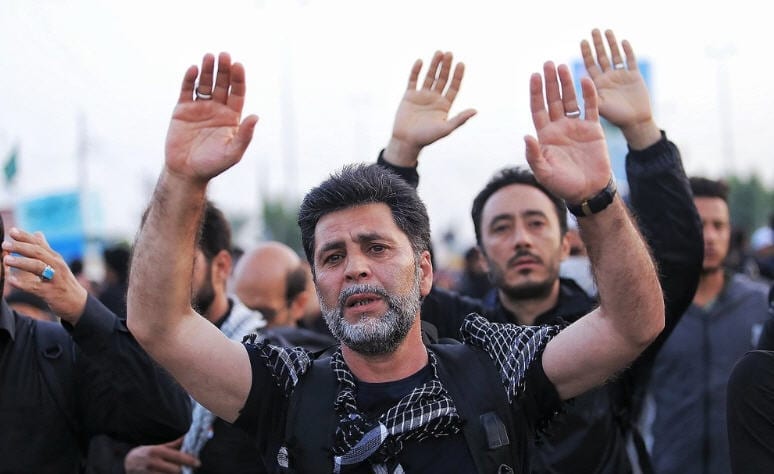 “لبّيك داعي الله.. لبّيك يا حسين.. لبّيك يا شهيد”.
