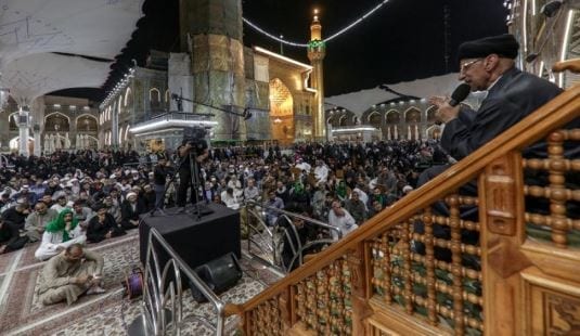 شهدت الأرجاء الداخلية والخارجية المباركة لمرقد أمير المؤمنين (ع) نشر معالم الحزن والسواد ، فيما أقيمت مجالس العزاء أحياها خطباء المنبر الحسيني السيد جاسم الطويريجاوي والشيخ عبد الله الدجيلي ، في رحاب الصحن الحيدري الشريف.