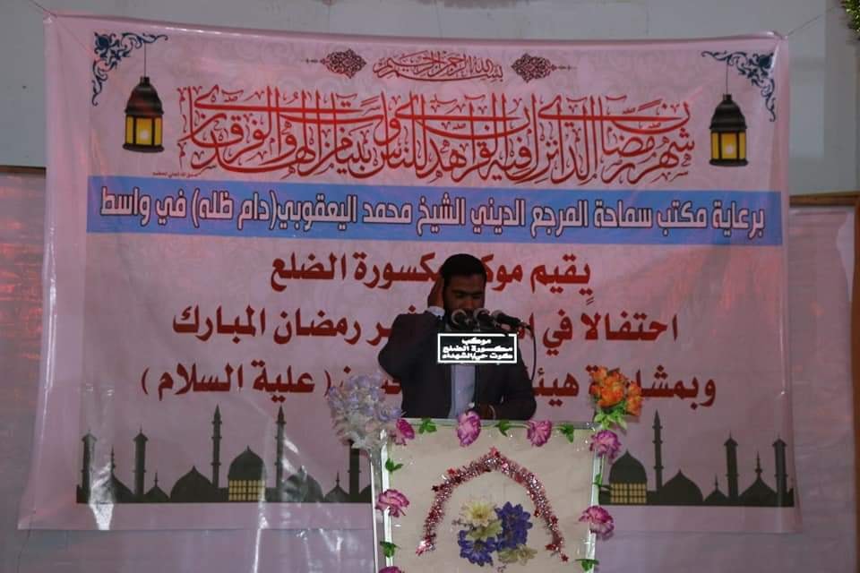 برعاية مكتب سماحة المرجع الديني الشيخ محمد اليعقوبي (دام ظله) في واسط, أقام موكب مكسورة الضلع وبالتعاون مع هيئة أيتام الحسين محفلاً لإستقبال شهر رمضان المبارك , وتكريم المكلفين بالصيام لأول سنة في مسجد الأبرار تشجيعا لهم على أداء هذه الفريضة المباركة .
