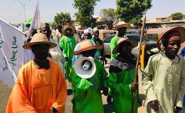 احتفل المسلمون الشيعة في نيجيريا، بمناسبة ولادة النبي (ص) بطريقتهم الخاصة، ويحملون صور زعيم الحركة الاسلامية الشيخ ابراهيم الزكزكي الذي تعتقله السلطات منذ أكثر من ثلاث سنوات.