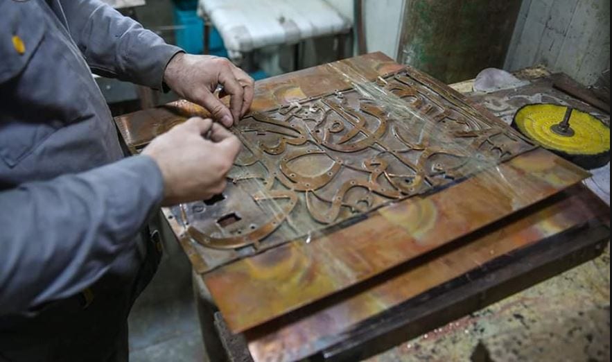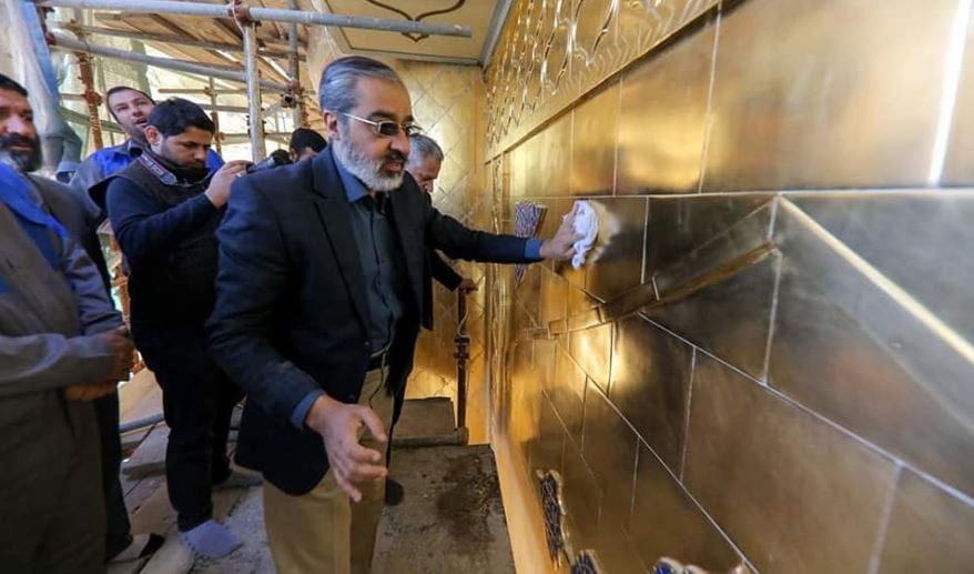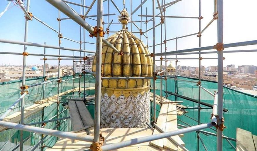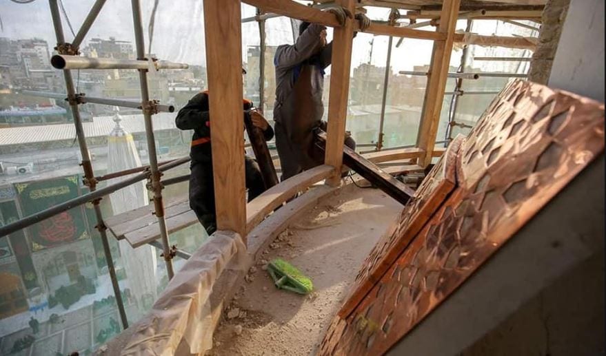 “شاهد” أعمال مشروع إعادة تذهيب المنارتين والإيوان الذهبي لحرم أمير المؤمنين(ع)