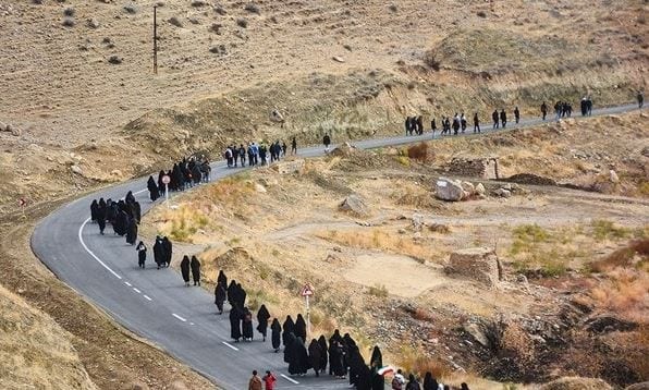 قوافل راجلة من الزوار تتوجه إلى مشهد المقدسة