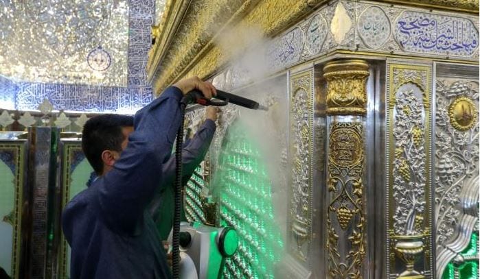 الانتهاء من الأعمال الخاصة بجلي الشباك الطاهر لمرقد أمير المؤمنين(ع)