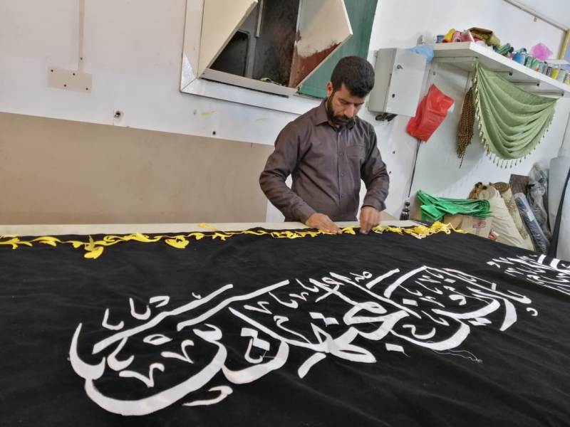 العتبة العلوية تباشر بعمل اللافتات الخاصة بذكرى شهادة الإمام الكاظم(ع)